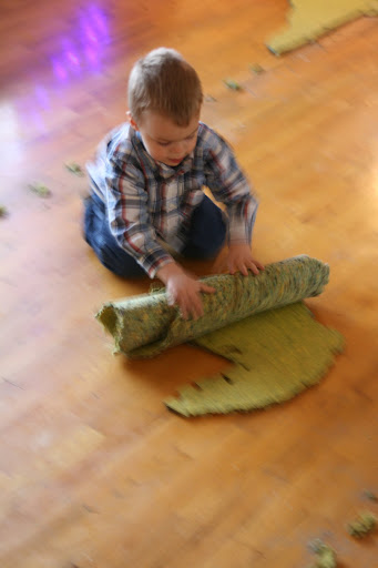 It has certianly kept me busy. I still need to take up the tape around the door jams, remove about two inches from each connecting area with carpet and put in the 'transition strips' to go from hardwood to the other rooms... but wow. I am so crazy excited! And JOY, I already had one wool carpet. I will need at least one more before the project is through, but this one is holding us over very well. :)