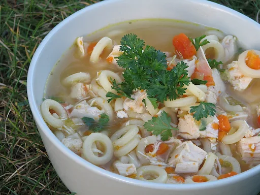 I have joined a Dinner Co-op. It has been great for the most part, but I am not cooking much that is mine. Even the one above is only supplemented by me. The chicken noodle soup was from a friend. I added parsley, a cube of bouillon, and the noodles... and that was it.