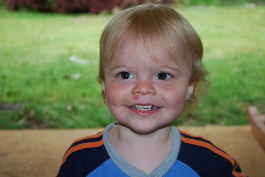 Look at these beautiful brown eyes on this baby. Gosh... he looks like his dad. Arn't those eyes beautiful? And this smile... that is just filling out with 4 new teeth (he now has the last of 16 that have come in in since Nov) looks more like Don's every day. This laugh, this smile. It is one of the first things I fell in love with. I am sure you can see why. I have to admit to really enjoying having a child that looks like the man I love. I have two children who look like me. This is a treat.