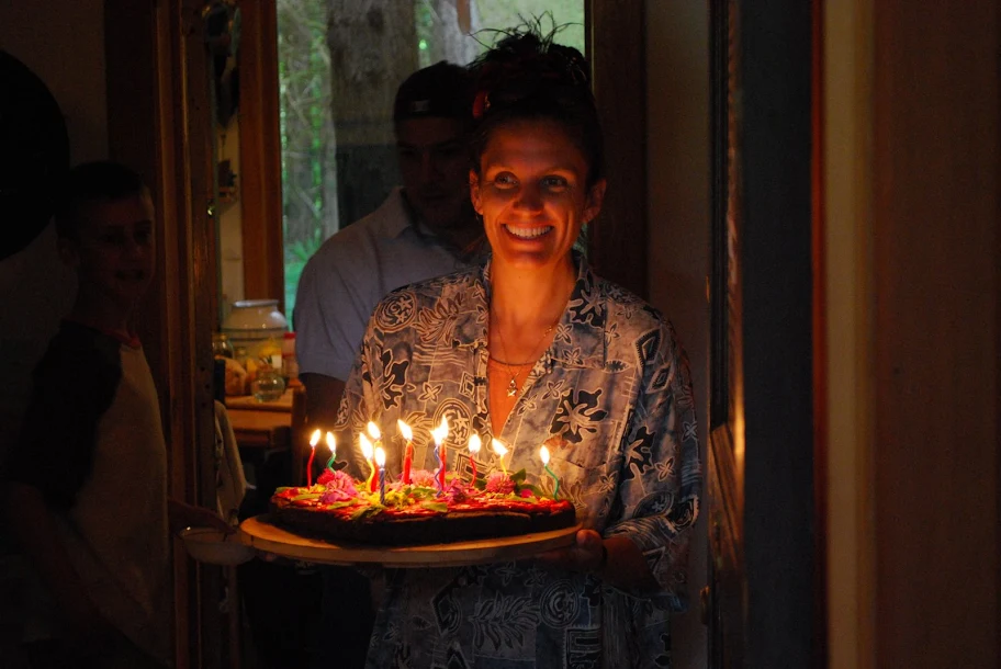 Here is her beautiful mama with the most stunning birthday cake ever! Now I don't know if I have ever brought this up on this blog, but I am not a fan of cake. This cake though, is light, yet feels like real food... not just white flour and sugar... I have gotten the recipe and will share it with you at the bottom of this post. It is truly wonderful and you will be STUNNED to know what is in it!
